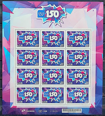 Brazil (Brasil) issued a single stamp on 9 October 2024 at the day of the World Post Day. The Brazilian stamp was issued to celebrate 150th Anniversary of UPU (Universal Postal Union). The Brazil UPU150 stamp is of standard design picked up by UPU for the omnibus issue.